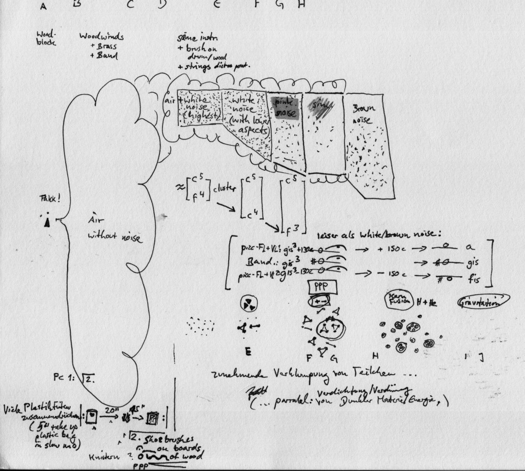 Strangely enough, the two ideas, air condition for orchestra and the creation of musical matter, matched very well. The result is matter and motor, a reflection on motor reality and a reconstruction of the beginning of matter and the self-development of order.