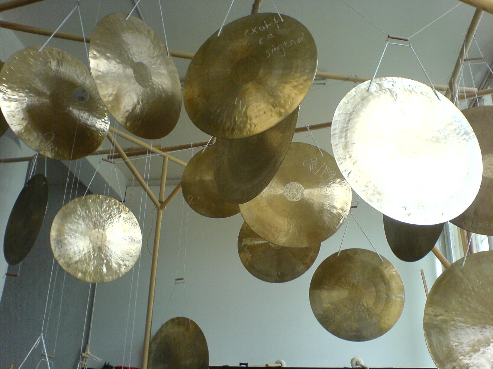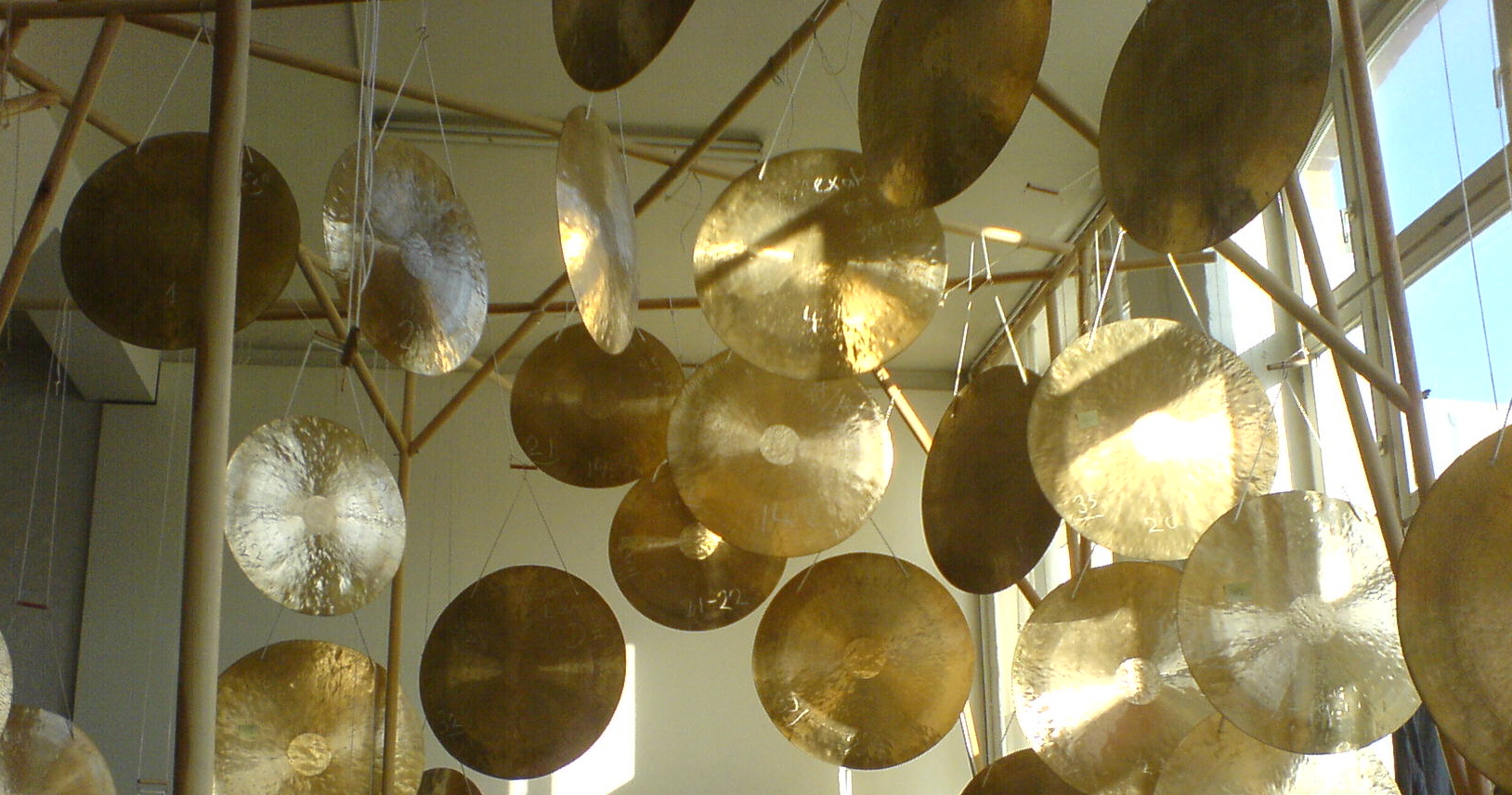 Die Komposition für fünfzig Windgongs schwankt zwischen Konzert und Installation. Die handgeschlagenen Klangscheiben mit 25 – 70 cm Durchmesser gliedern einen begehbaren Raum.